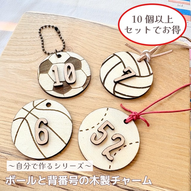 セット割★アレンジ自在【ボールと背番号の木製チャーム】※10個以上から受付