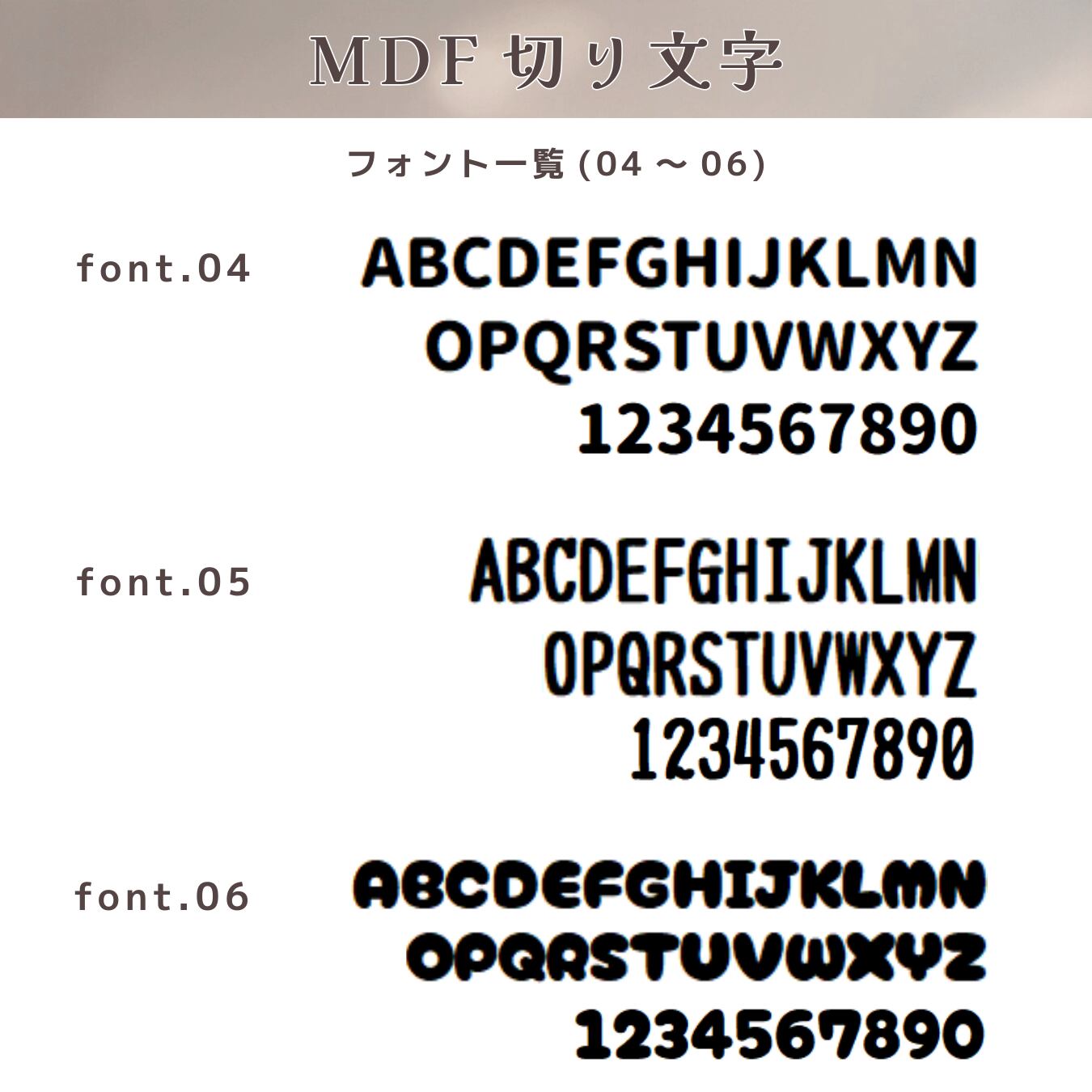 商品名:5cmサイズ/2.5mm厚 【MDF切り文字】