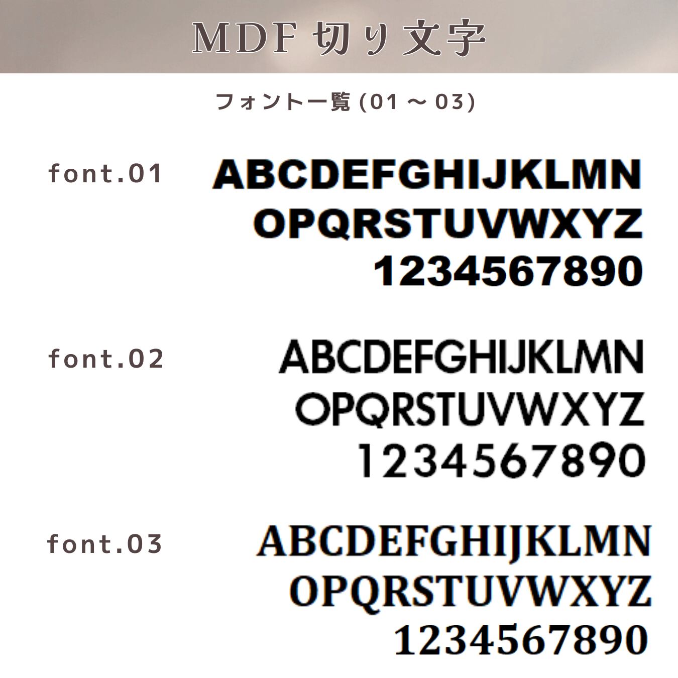 サイズ・フォントの個別オーダーも受け付けております。