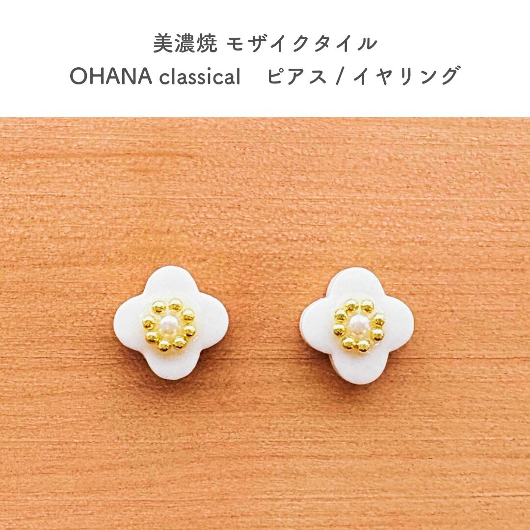 【tile mini】お花タイルのピアス&イヤリング-white02- ※送料無料