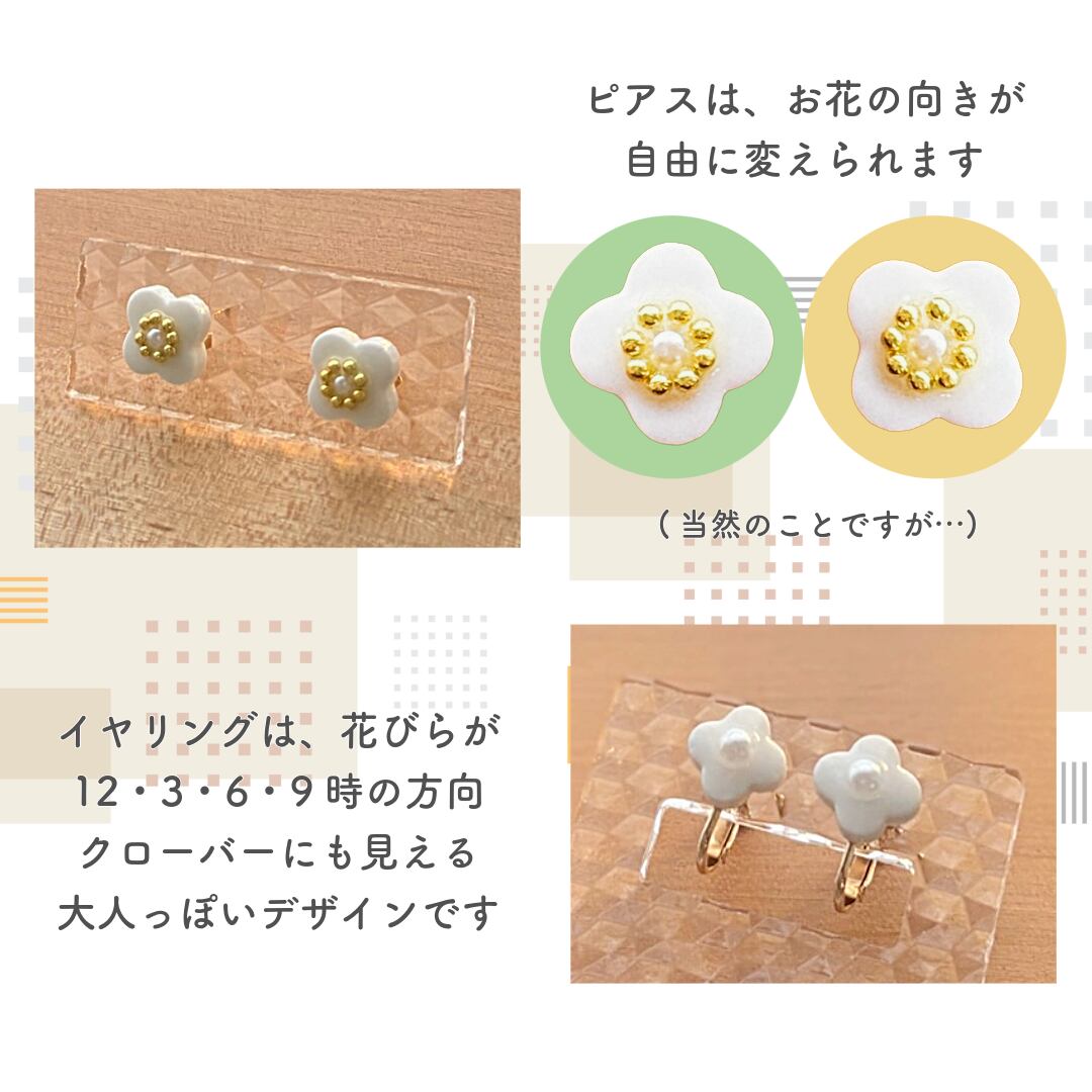 【tile mini】お花タイルのピアス&イヤリング-white01- ※送料無料