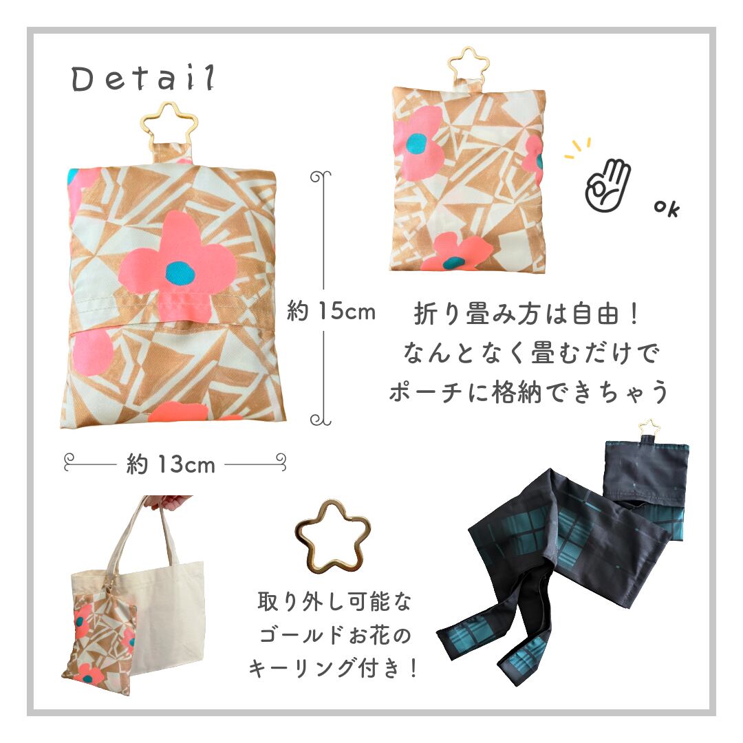 ポーチからエコバッグを取り出すと、広がるデザインと機能性に驚くこと間違いなし!